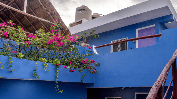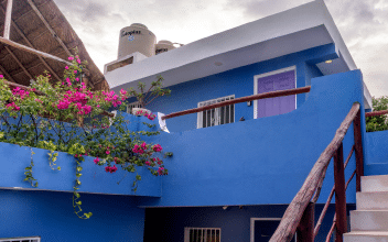 The apartment features shared open-concept living areas perfect for gathering. Enjoy the rooftop plunge pool shaded by a spacious palapa, complete with have hammocks, rustic furnishings, a lunch area, and sunny spots for sunbathing.